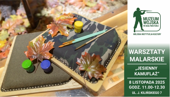 Zapraszamy rodziny z dziećmi na warsztaty malarskie. Podczas zajęć dzieci będą mogły wcielić się w rolę artysty i stworzyć jesienny kamuflaż na płótnie malarskim. Za pomocą liści i farby, używając techniki stemplowania powstanie wyjątkowy obraz, który ozdobi wnętrze waszego domu. Do warsztatów będą przygotowane wszystkie potrzebne materiały.
