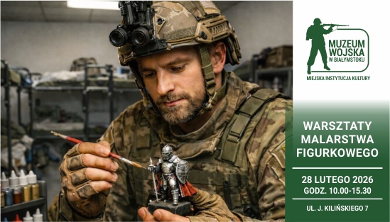 Muzeum Wojska w Białymstoku zaprasza na kolejne warsztaty z cyklu spotkań malarskich, podczas których każdy jest mile widziany. Początkującym zapewniamy model, wsparcie merytoryczne i dostęp do farb, aby rozpocząć przygodę z malarstwem figurkowym. Doświadczony malarz może liczyć na dobre słowo i towarzystwo ludzi pozytywnie zakręconych w naszym hobby.