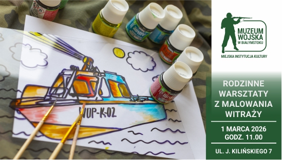 Zapraszamy rodziny z dziećmi na warsztaty z wykonywania witraży. Podczas zajęć uczestnicy poznają podstawy techniki witrażu oraz za pomocą wojskowych szablonów wykonają własną, kolorową pracę, którą zabiorą ze sobą do domu. Gotowe witraże staną się piękną wojskową pamiątką wspólnego spotkania.