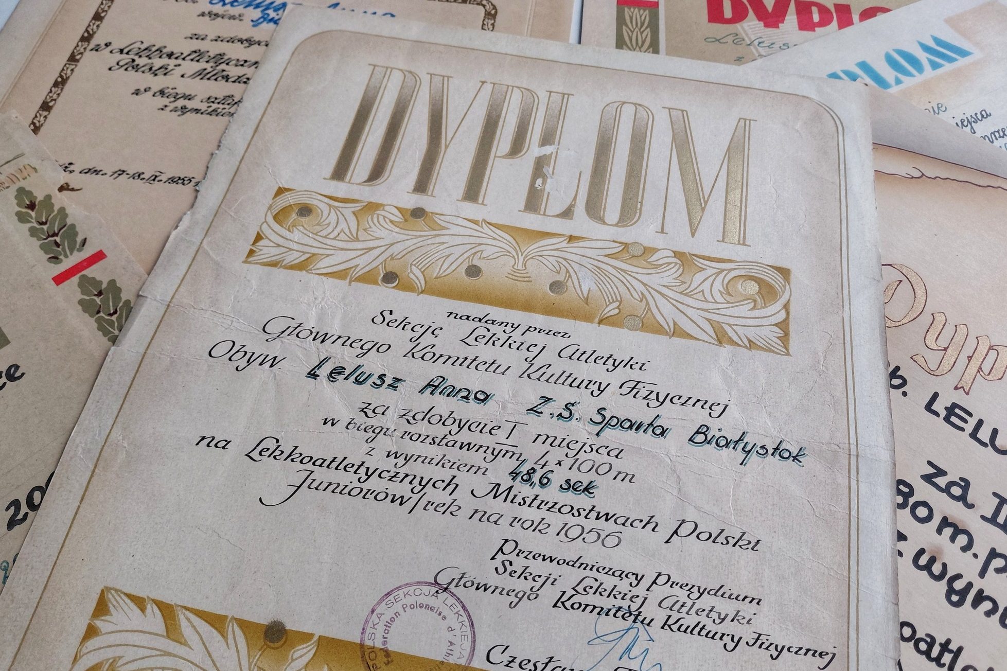 Do zbiorów Galerii Białostockiego Sportu trafiły pamiątki po Annie Lelusz (1939-2024), w latach 50. XX wieku lekkoatletce m.in. Sparty i Jagiellonii Białystok, specjalizującej się w biegach sprinterskich.