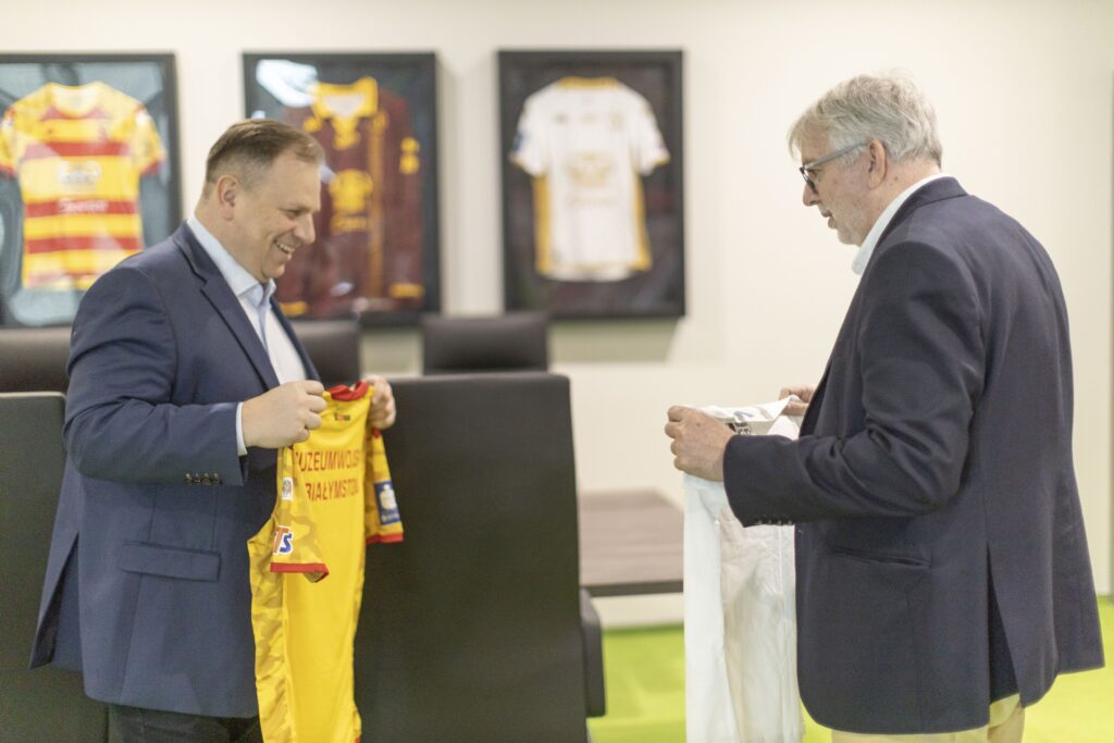 Z przyjemnością informujemy, że podczas wtorkowego (1.04.) spotkania dyrektora MWB Roberta Sadowskiego i Prezesa Zarządu Jagiellonia Białystok Ziemowita Deptuły podpisana została umowa o współpracy na rzecz powstającej Galerii Białostockiego Sportu.