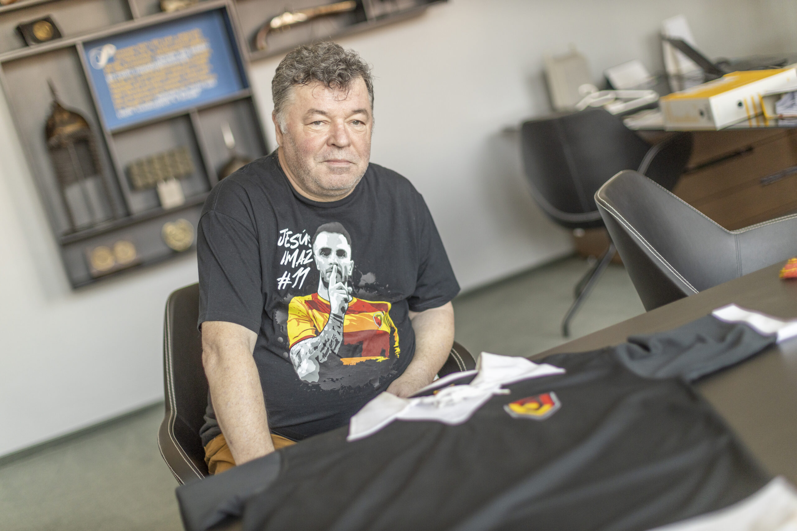 Pan Jacek Kowalewicz od kilkudziesięciu lat jest kibicem Jagiellonii Białystok, kolekcjonerem piłkarskich koszulek i – jak się szybko okazuje – mistrzem riposty.